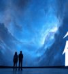 青い背景に浮かぶバナナが示す『好奇心』。AI特異点と人類の未来を探る。